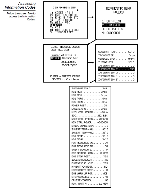 Unter Berücksichtigung der absehbaren technologischen Entwicklungen und der schon heute die Facharbeit im Kfz-Handwerk kennzeichnenden Aufgaben lassen sich einige kontinuierliche Fortschreibungen von Qualifikationsanforderungen erwarten. So werden Montage- und Demontagevorgänge von modularen Fahrzeugkomponenten weiterhin eine Rolle spielen und bei der Diagnose wird der Zugang zu den erforderlichen Systemzuständen zur Beurteilung des Funktionszustandes wie für die Diagnoseprozesse mit Hilfe von Diagnosesystemen im Vordergrund stehen. Dies ist auch heute schon bei weit im Markt verbreiteten Hybridfahrzeugen erkennbar. So wird beim Toyota Prius analog zur Diagnose von Verbrennungsmotoren der Elektromotor anhand von Kennwerten über Datenlisten und Fehlercodes (Diagnostic Failure Codes – DTCs) beurteilt und daraus im Anschluss das geeignete Reparaturverfahren bestimmt (vgl. Abb. 4). Die Diagnoseaufgaben verändern sich also nicht gravierend und so verwundert es nicht, dass es zwar Produktschulungen bei Toyota für Kfz-Mechatroniker gibt, um die Arbeitsaufgaben am neuen Hybridfahrzeug zu schulen, sich diese aber kaum von Produktschulungen anderer Neuerungen unterscheiden. Jedenfalls spielt die Hochvolttechnologie in der bisherigen Arbeitspraxis keine hervorzuhebende Rolle – von der Arbeitssicherheit einmal abgesehen. Arbeiten im Umfeld der elektrotechnischen Komponenten selbst fallen im Werkstattalltag nicht an. Messungen an diesen werden nicht im Sinne elektrotechnischer Messungen durchgeführt (etwa Kennlinien von Kondensatoren oder Leistungstransistoren (Insulated Gate Bipolar Transistoren – IGBT messen). Stattdessen werden aus diesen für die Beurteilung des fahrzeugspezifischen Systemzustands geeignete fahrzeugtechnische Kennwerte gebildet. Werden Messungen und andere Zugänge im Betriebszustand des Fahrzeuges notwendig (also unter Hochspannung), dann werden berührungslose Messverfahren eingesetzt. Auch der Umgang mit solchen Instrumenten ist für Kfz-Mechatroniker nichts prinzipiell neues, werden doch Messungen an HV-Zündanlagen mit entsprechenden Tastköpfen (Spannungsmesszangen) und Hochstrommessungen in der Startanlage oder am Generator mit geeigneten Stromzangen durchgeführt.